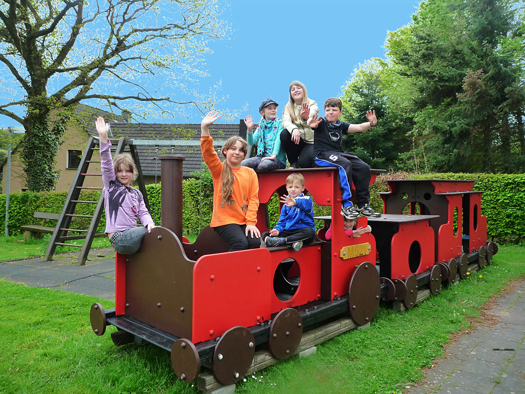 In Eigenleistung restaurierte die Dorfgemeinschaft eine Holzeisenbahn, die Sie von Privater Hand erworben hatten. In der Scheune des Cäcilienhofes wurden seit einigen Monaten Ausbesserungsarbeiten an der Log und den Wagons durchgeführt. Die Lorbacher Senioren Josef Dahmen und Hubert Hufschmidt restaurierten die Holz-Bahn und verpassten ihr einen neuen Anstrich. Nach Fertigstellung transportierte Helmut Dahmen die Bahn mit seinem Frontlader zur neuen „Haltestelle“ auf den Spielplatz am Lorbacher Dorfgemeinschaftshaus. Dort warteten einige Kinder schon neugierig auf das neue Spielzeug. Der Vorsitzende der Dorfgemeinschaft Lorbach und Initiator dieser Aktion, Dieter Friedrichs, bedankte sich bei allen beteiligten für das großartige Engagement.